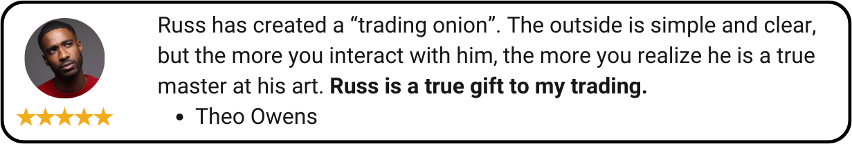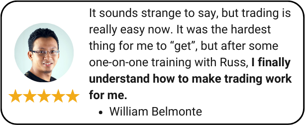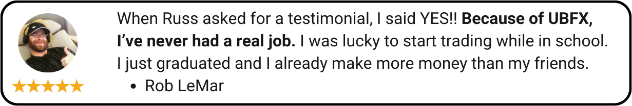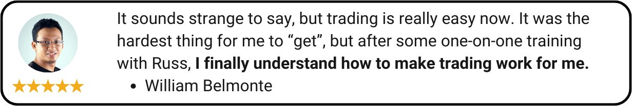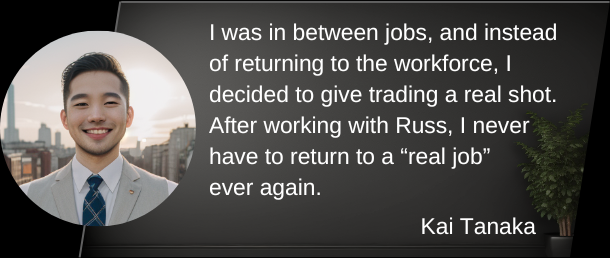 "I have been humbled in the best way. I would have losing streaks and ultimately would blow account after account. Russ is a down-to-earth teacher, and through his advice, I never blew an account again. Using the right system in the right way has transformed everything for me."