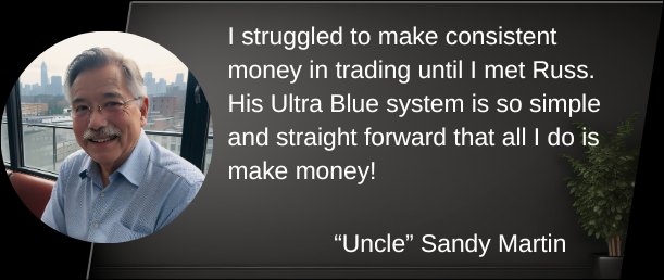 "Russ is an exceptional mentor, and the Ultra Blue Forex system is pure genius. Thanks to them both, I've never been more confident in my trades. I win more than ever, and my losses are always small."