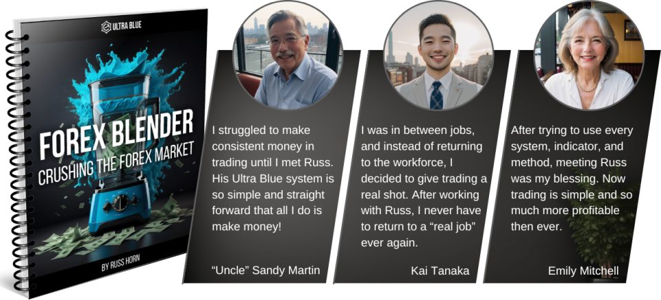 "The Ultra Blue Forex system means business. Russ's straightforward teaching and the system's no-fluff approach have simplified my trading journey. No more guesswork. I understand why funds and other investment services use his system!"